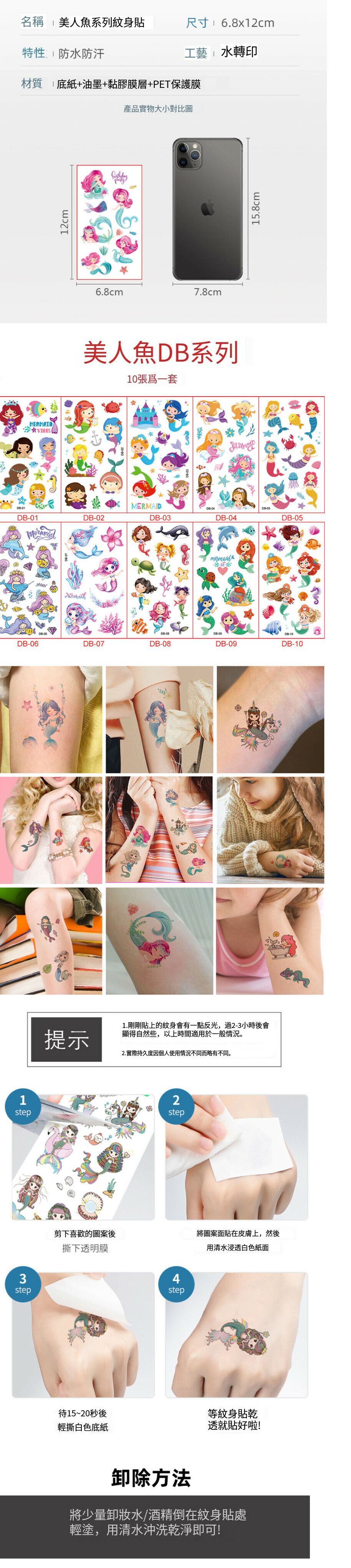 激抵卡通紋身貼節日派對貼紙(美人魚DB系列)