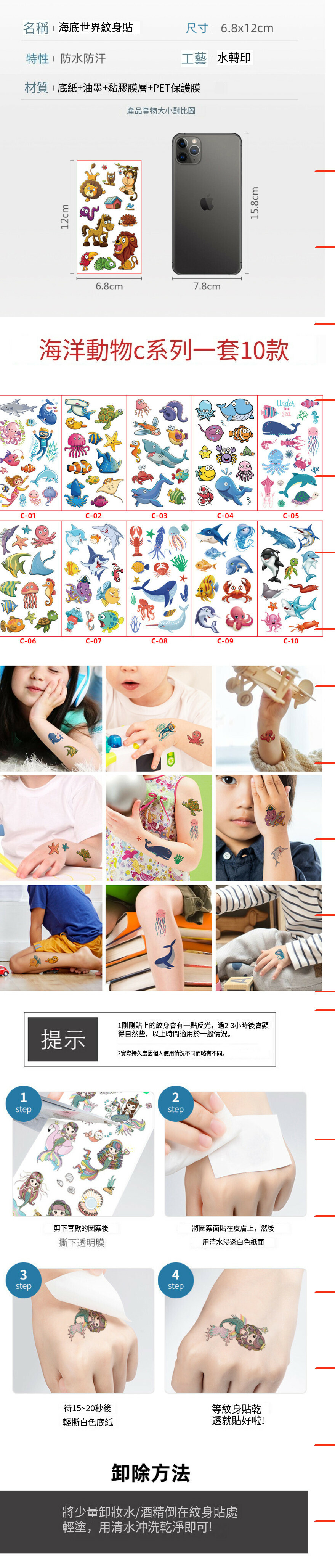 激抵卡通紋身貼節日派對貼紙(海洋C系列)