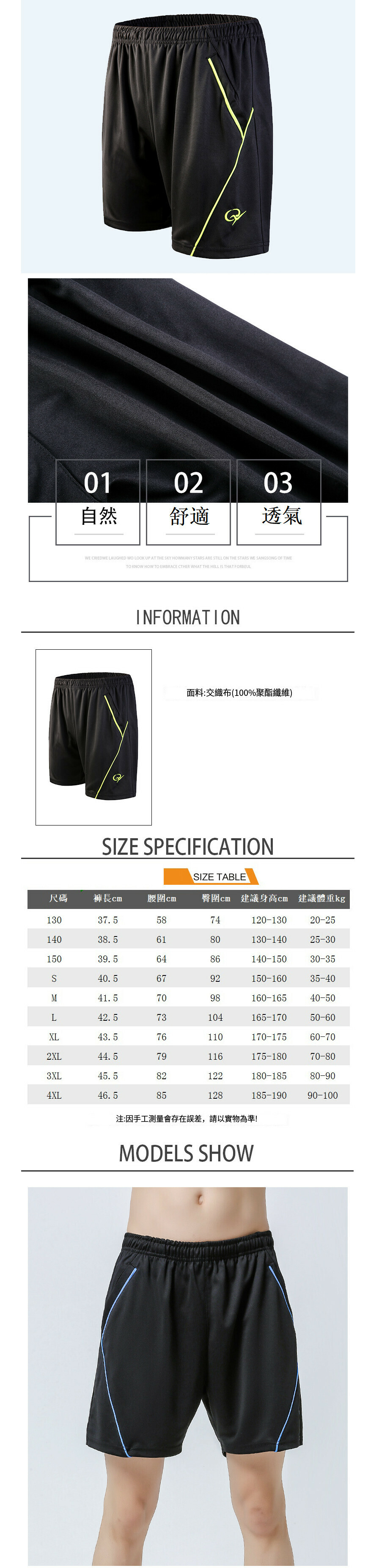 激抵休閒運動短褲(黑配螢光綠)(M碼)