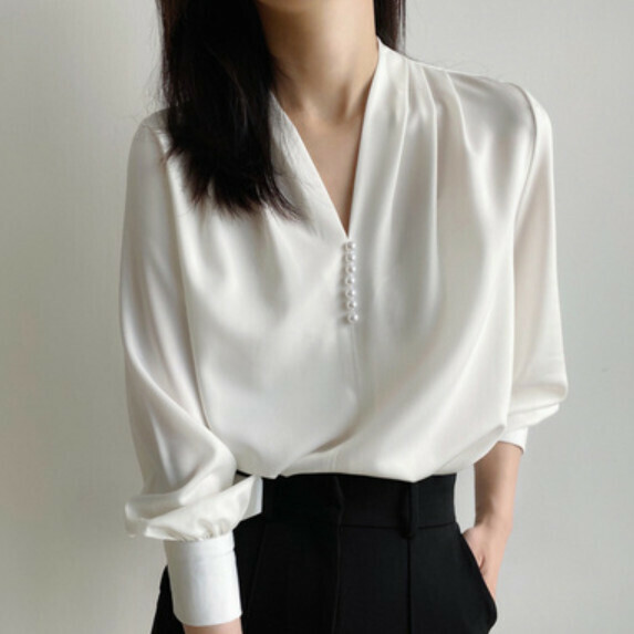 激抵休閒V領長袖襯衫女秋季(粉色【S_L碼】(下單後聯繫客服確認發貨尺碼)】