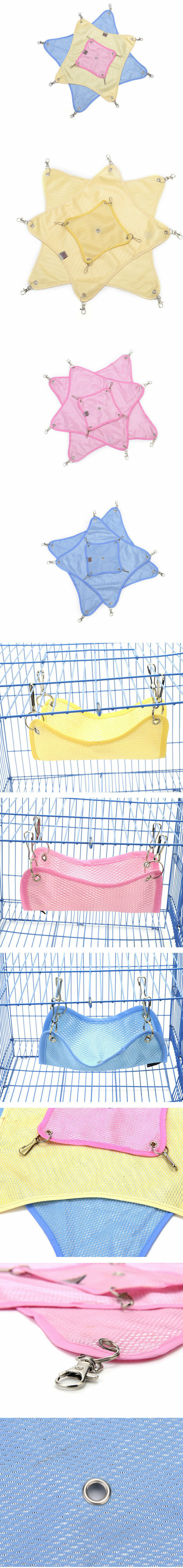 激抵貓床-懸掛式透氣格網布鞦韆貓吊床貓籠適用 (藍色M: 34 x31 cm)