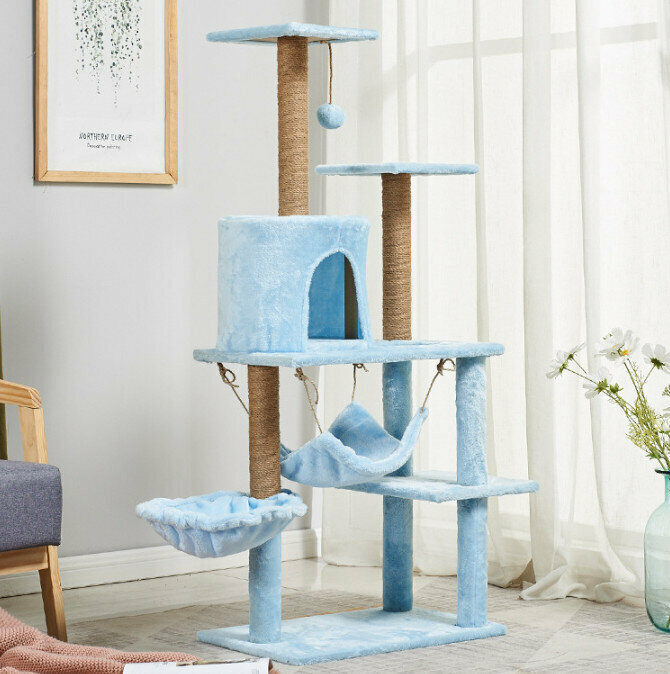 激抵貓爬架-樂寵貓吊床貓樹(天藍色)38*55*130