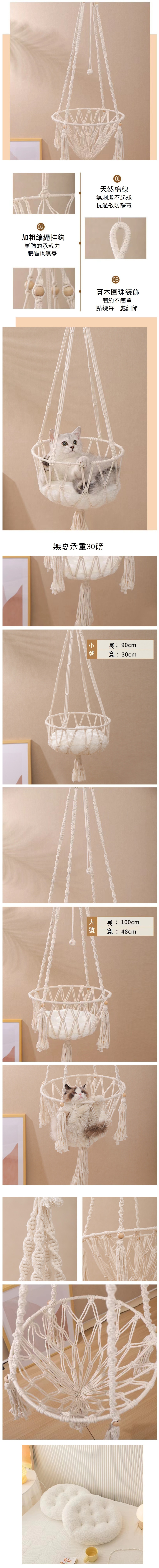 激抵貓咪吊籃懸掛編織貓窩吊床含墊子(白色 40*100)