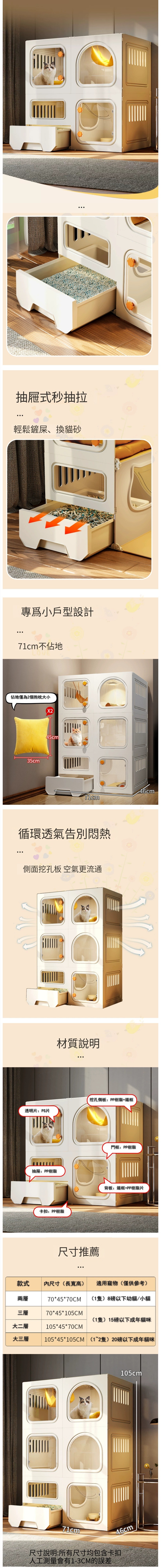 貓屋,貓籠,貓厠所,高級日式設計【二層【71*46*75白】+滑輪款