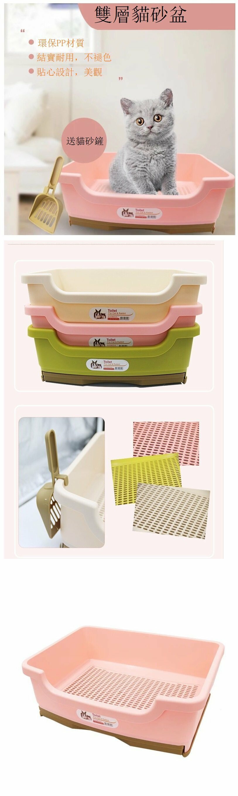 新款貓砂盤-雙層抽屜式松木貓砂盤(粉紅)