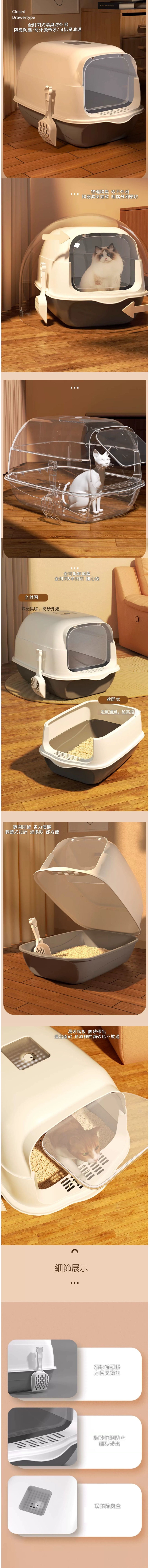 貓砂盆全封閉式隔臭防帶砂防外濺【氣質灰+貓砂鏟顔色款式隨機】