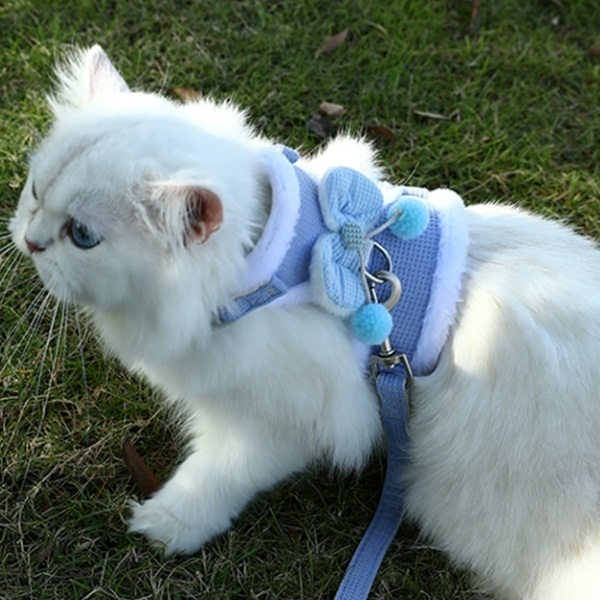 貓咪專用牽引背心可調節遛貓繩子【升級加絨款】鲜紫色蝴蝶結,M-中型