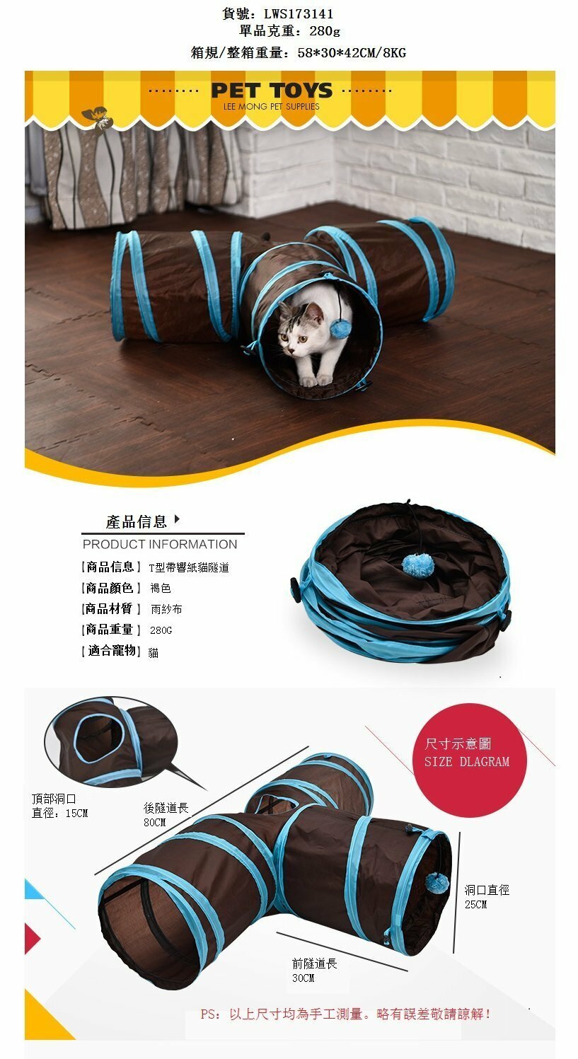 新款貓隧道貓鑽帳篷窩可折疊玩具(褐色)