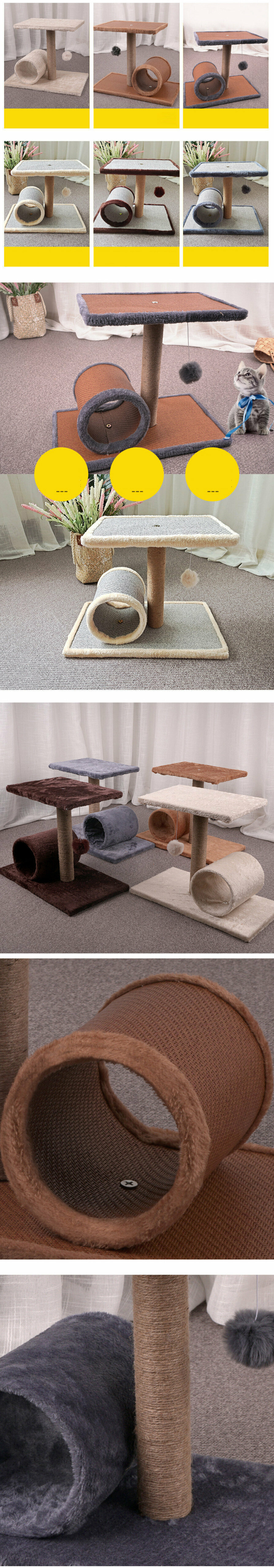新款貓窩一體二層跳臺(灰色+土黃藤席)