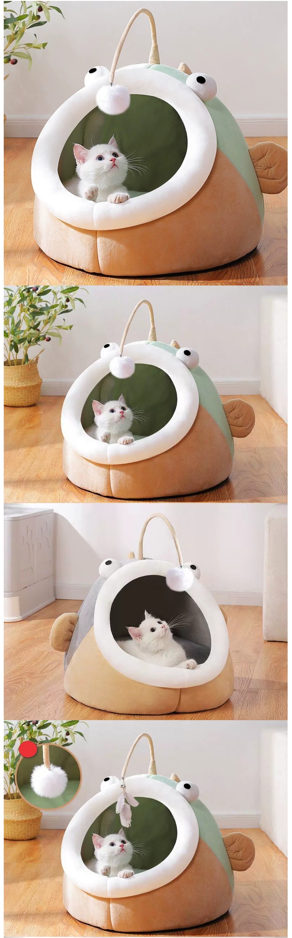 貓窩半封閉式房貓屋貓床【燈籠魚-灰色】-L-40*35cm