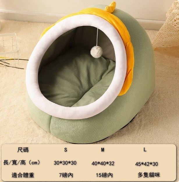 貓窩半封閉式房貓屋貓床【綠色恐龍】-L-45*42*30cm