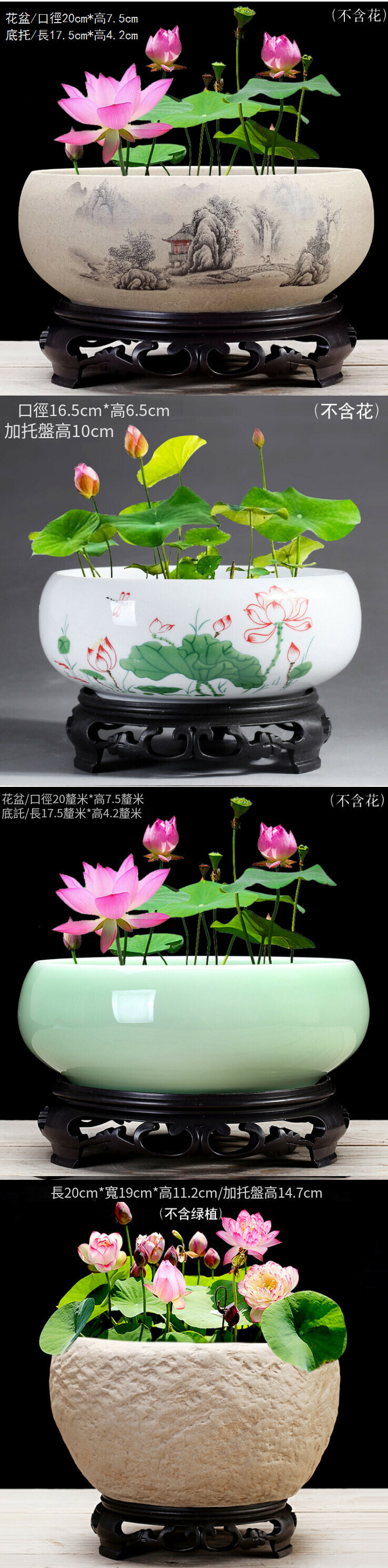 熱賣陶瓷花盆【中號 蓮花蜻蜓水培盆 配底座】