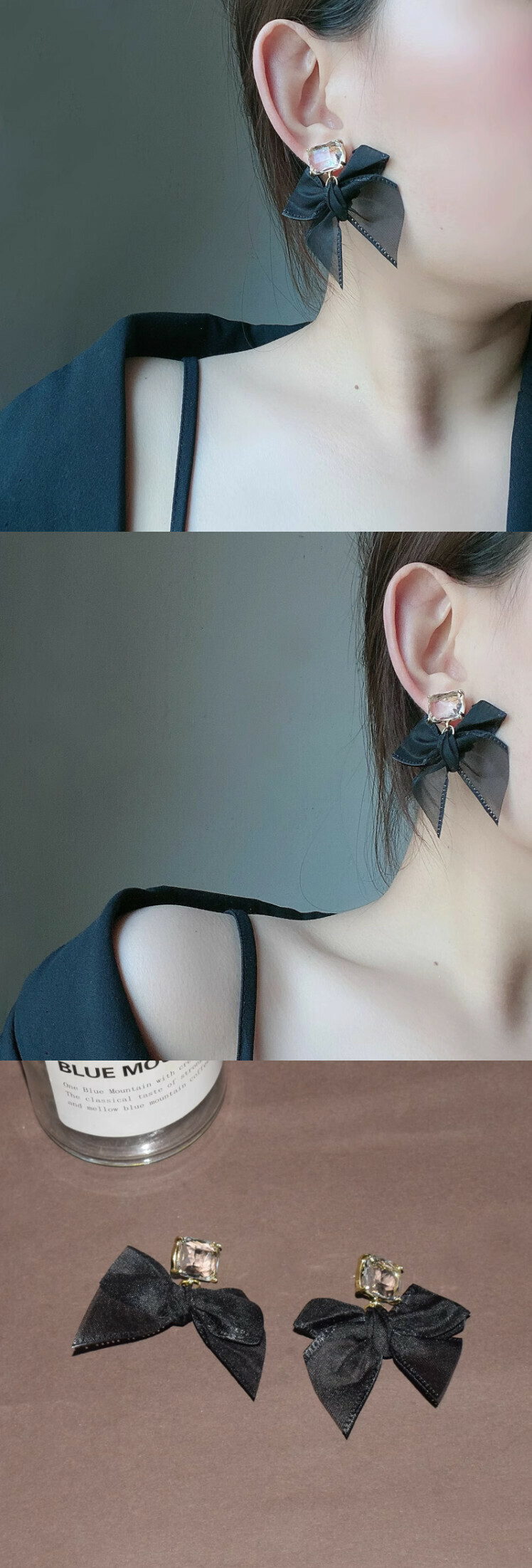 雪紡蝴蝶結冰塊耳環