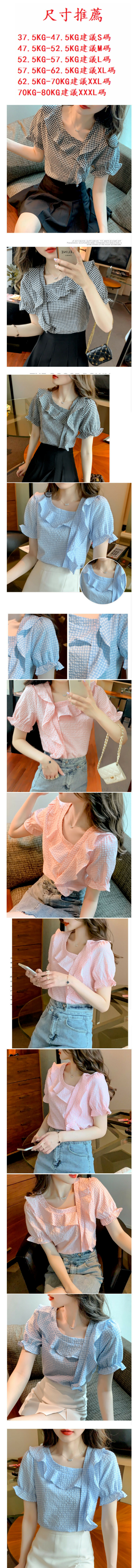 熱推雪紡短袖襯衫(藍色格子 尺碼:3XL )