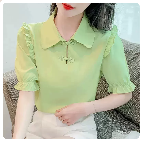 熱賣雪紡短袖襯衫(綠色 尺碼:S-3XL)(下單後請聯絡客服確認發貨尺碼)