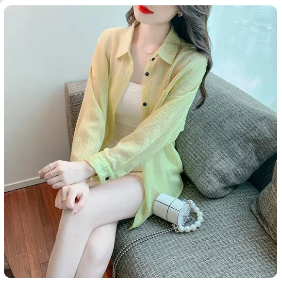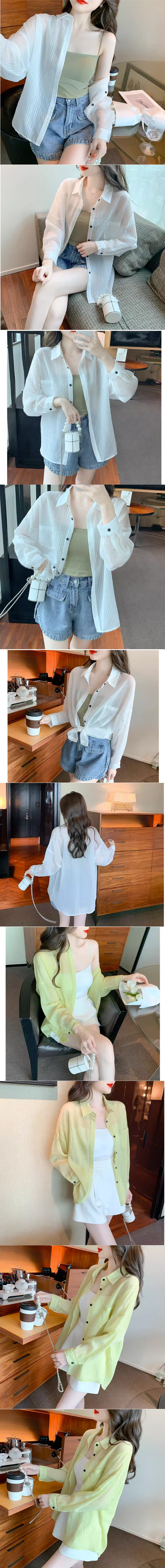 爆款雪紡條紋防曬襯衫(檸檬黃 尺碼:S-3XL)(下單後請聯絡客服確認發貨尺碼)