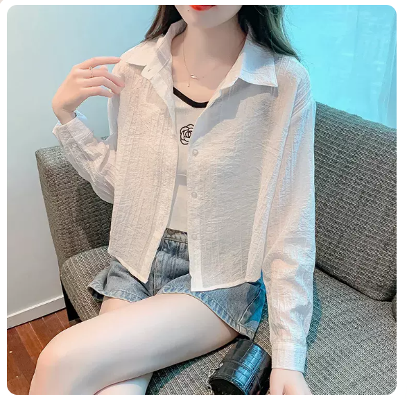 新款雪紡防曬長袖短款襯衫(白色 尺碼:S-3XL)(下單後請聯絡客服確認發貨尺碼)