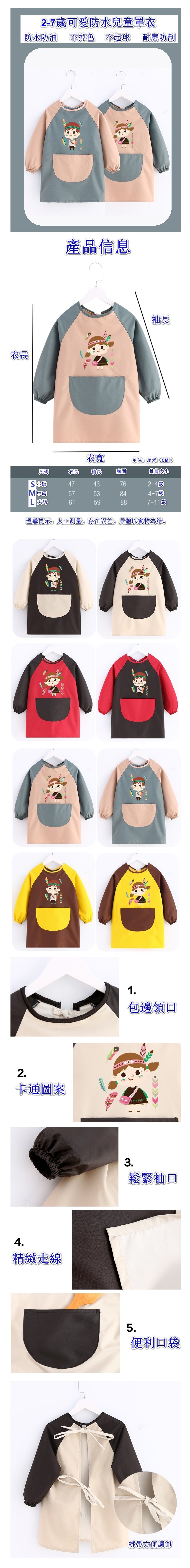 爆款兒童圍裙【長袖兒童防水黃配咖土著女大碼7-11歲】【規格:L碼 】