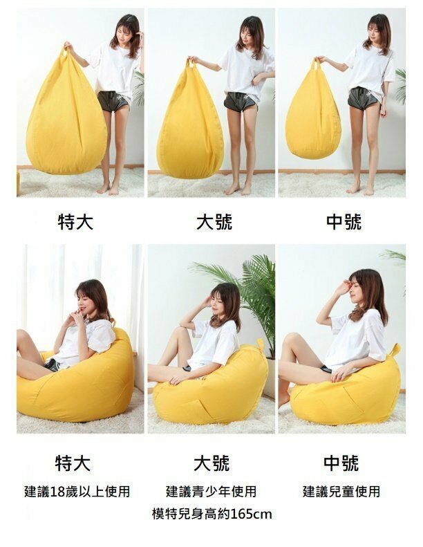 新款兒童豆袋沙發水滴榻榻米梳化 (中號 80*90m) 淺灰色