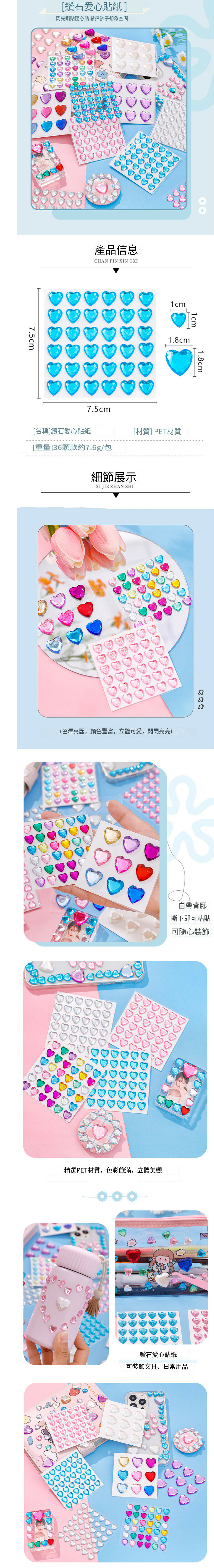 爆款兒童愛心貼紙水晶寶石貼畫(藍色愛心36顆)