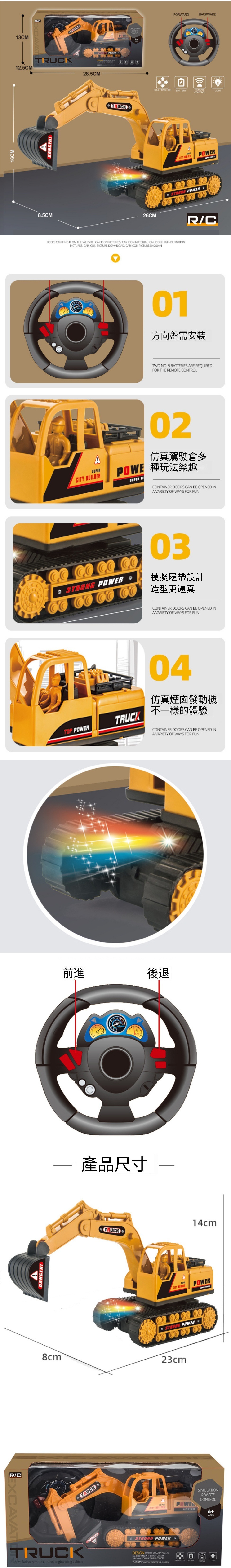 新款兒童方向盤模擬遙控車工程車挖掘機玩具(方向盤遙控車)