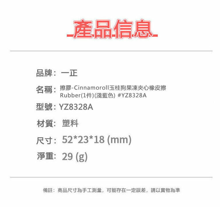 新款擦膠-Cinnamoroll玉桂狗果凍夾心橡皮擦 Rubber(1件)(淺藍色)