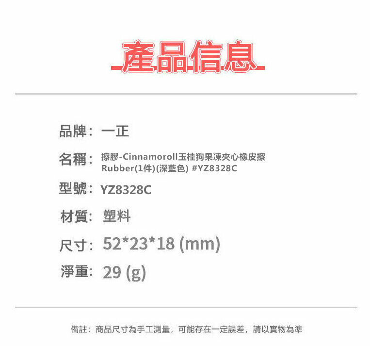 新款擦膠-Cinnamoroll玉桂狗果凍夾心橡皮擦 Rubber(1件)(深藍色)