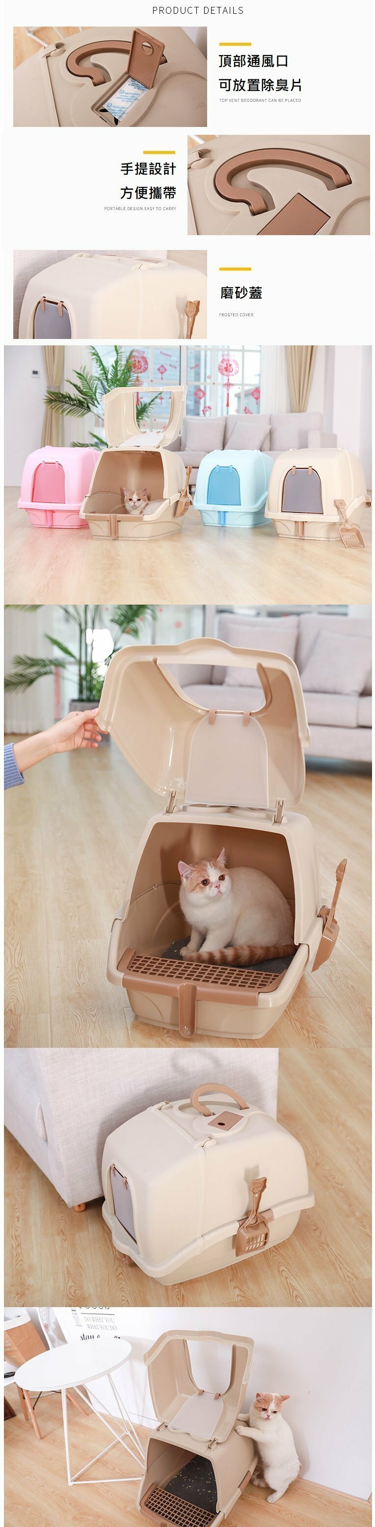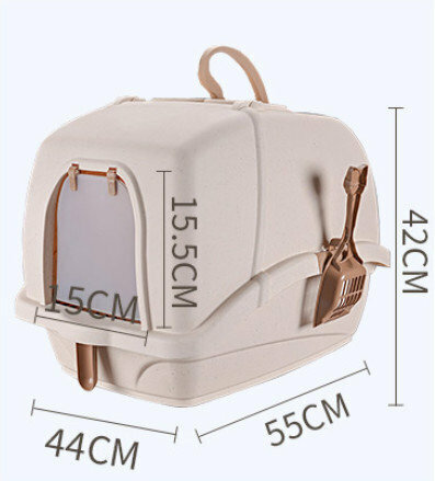 爆款封閉式貓砂盆 豪華超大號全封閉式防濺除臭貓廁所(卡其色)