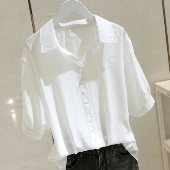 新款學院風短袖襯衫女夏季(天藍色【S_3XL碼】(下單後聯繫客服確認發貨尺碼)】