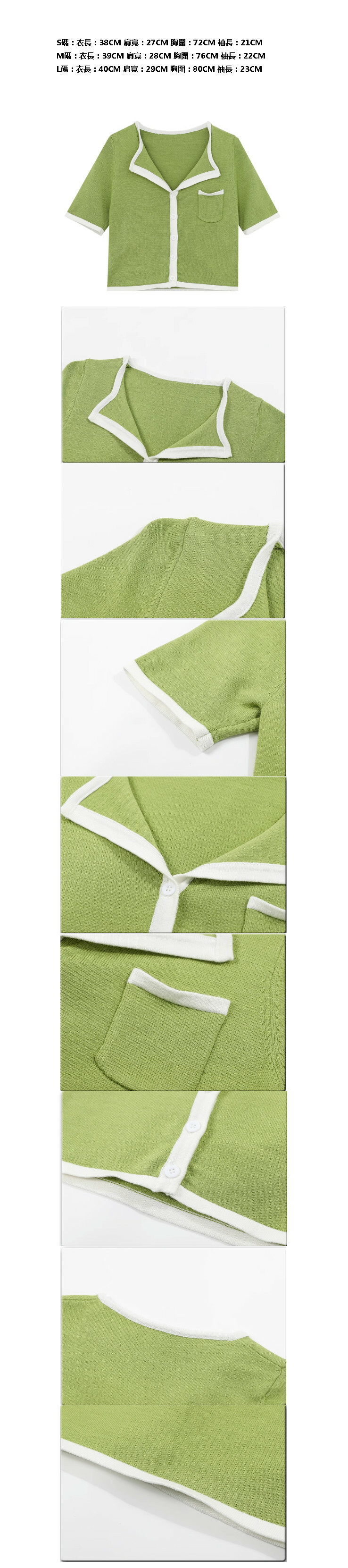 拼色口袋半開領短款針織短袖T恤
