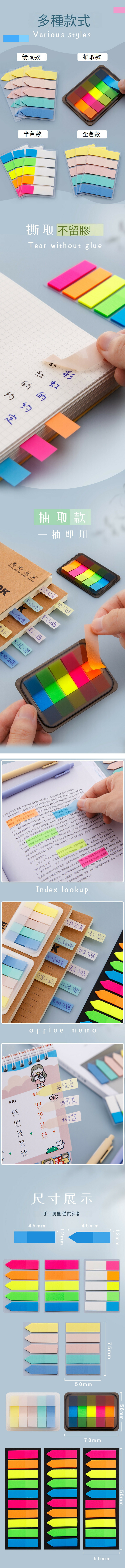 新款彩色PET螢光便利貼【馬卡龍-5條尖頭+5條平頭】