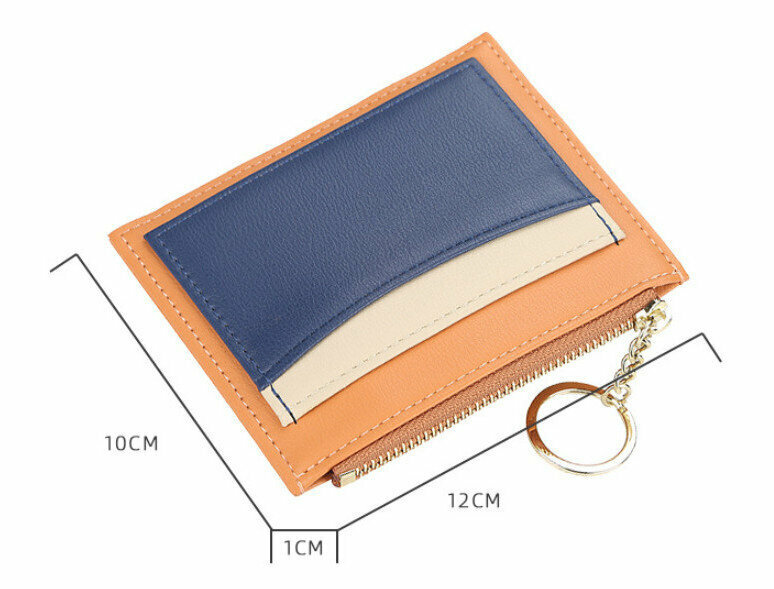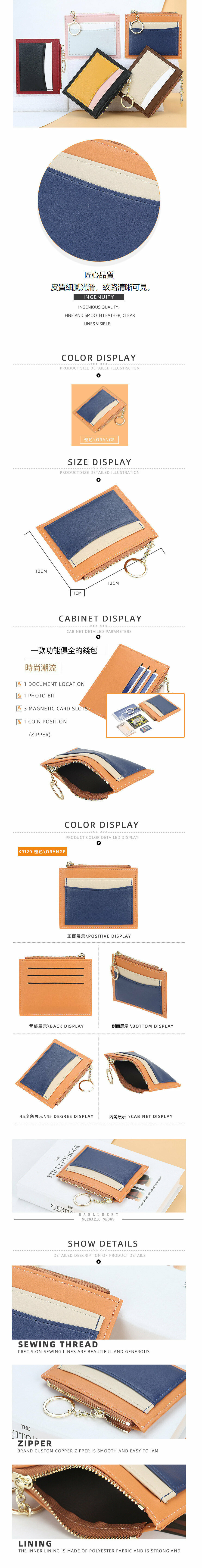 新款彩色拼接卡套零錢鎖匙包 超薄銀包 皮卡套【橙色】