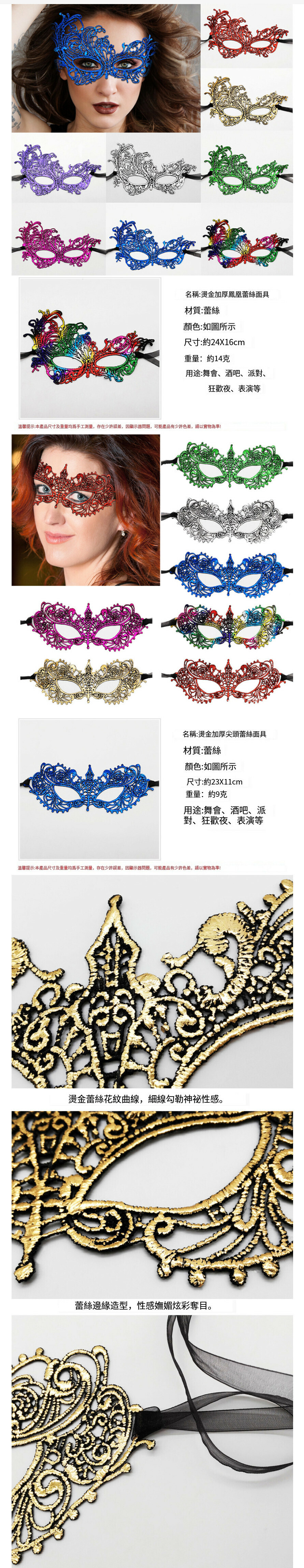 新款彩色面具舞會派對眼罩萬聖節面具(雙絲帶藍色-小尖頭)