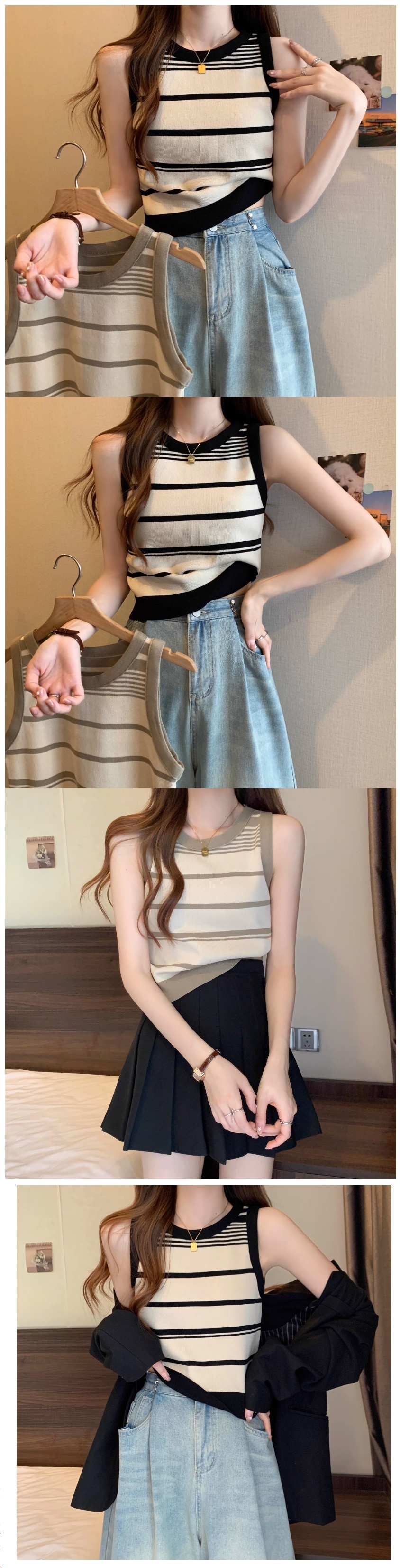 熱賣撞色針織條紋吊帶背心(黑色)(均碼,建議體重85-130磅可穿)】