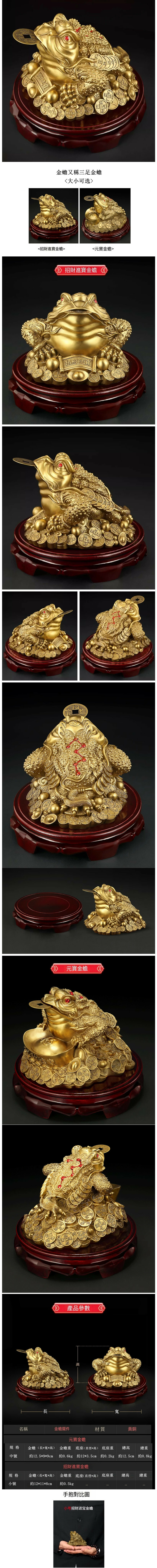 銅金蟾蜍招財擺件--風水擺飾【中號元寶金蟾+底座】1件