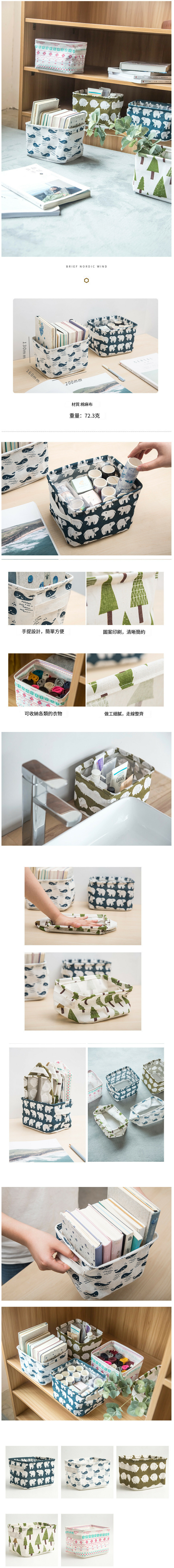 爆款棉麻桌面收納盒 布藝收納籃 收納箱 整理盒 雜物盒 (灰格子)