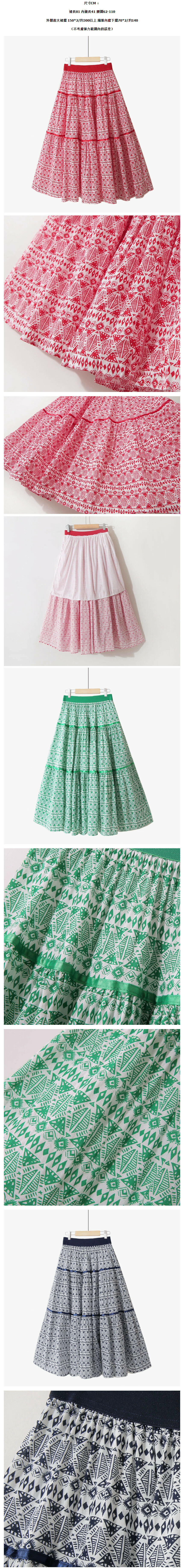 爆款棉麻民族風半身裙【紅色/棉/三角波紋-均碼 鬆緊腰】