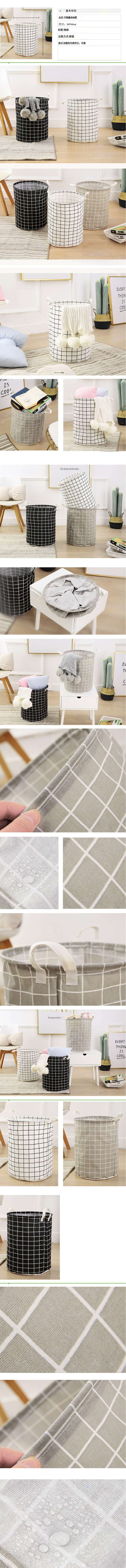 新款棉麻折疊收納籃 -圓桶洗衣籃 髒衣籃 污衣籃[黑格子]
