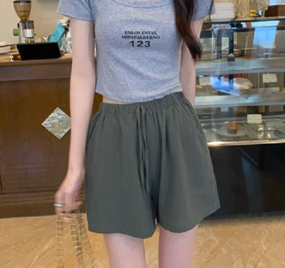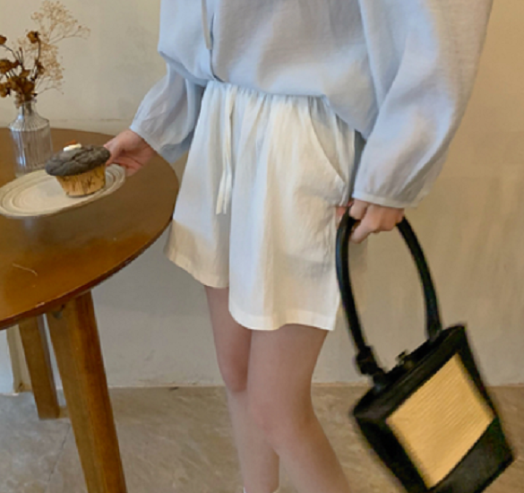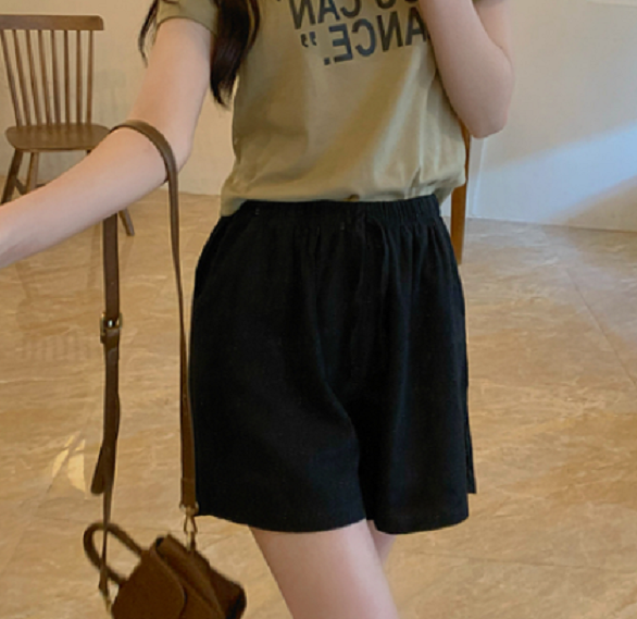 熱推棉麻高腰休閑短褲(白色)(尺碼:M-XL)(下單後聯絡客服確認發貨尺碼)】