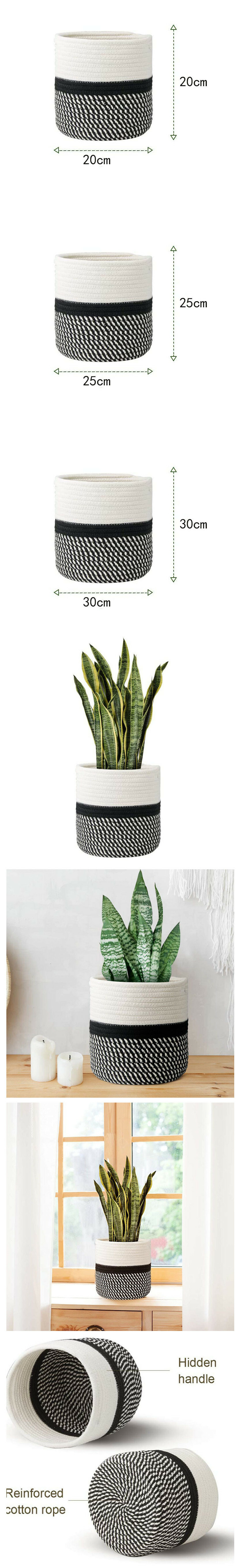 棉麻植物籃--收納籃收納籃 室內綠植花盆裝飾【白加雜花白黑30cm】1件