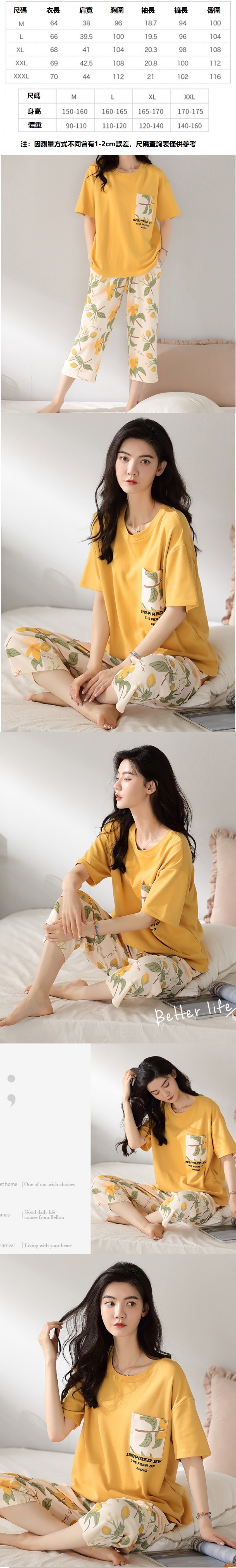熱賣純棉圓領短袖七分褲睡衣套裝【M-XXL碼 LF-62017】【下單后聯絡客服確認發貨尺碼 】#F284003098