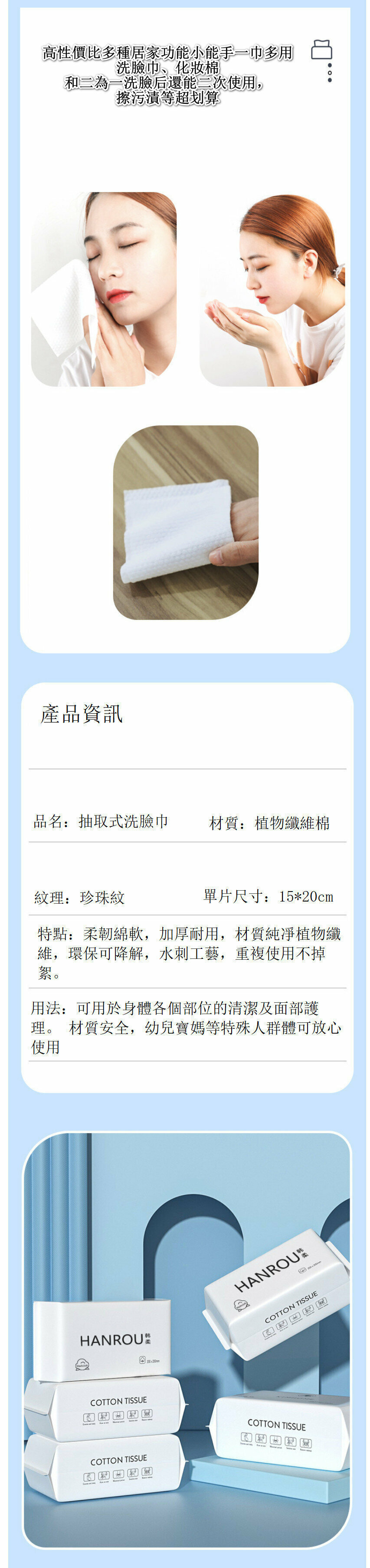 激抵全棉一次性洗面巾卸妝巾乾濕兩用【規格100抽珍珠紋(20*15)】