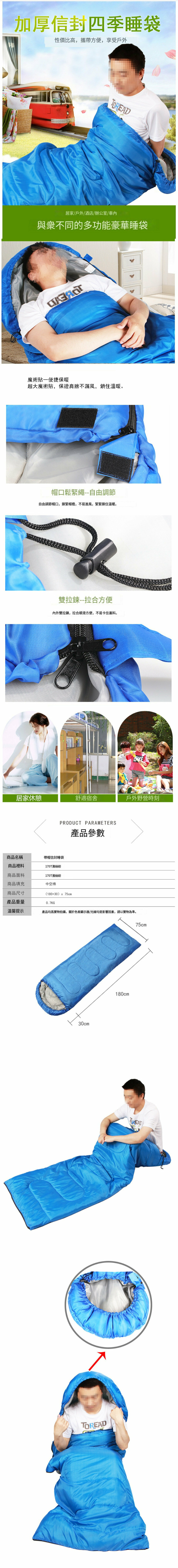 熱賣夾棉信封式戶外便攜超輕睡袋【寶藍(180+30)*75cm】