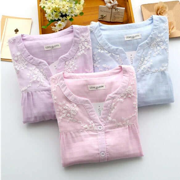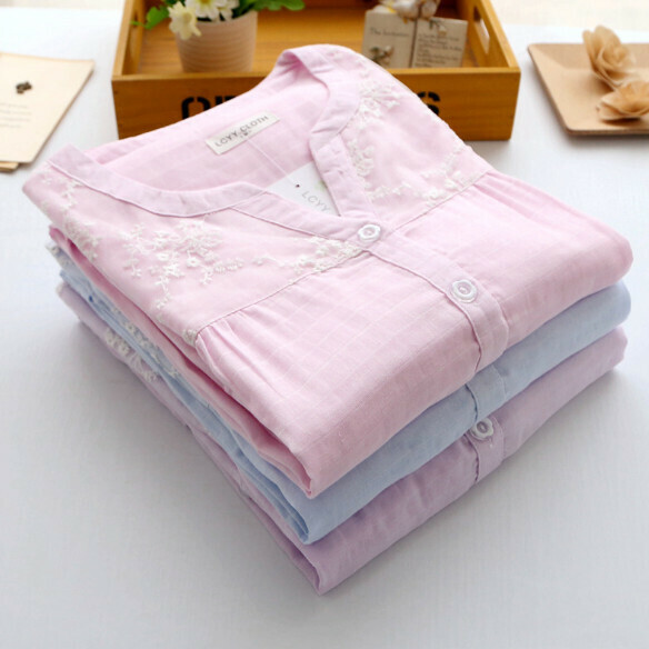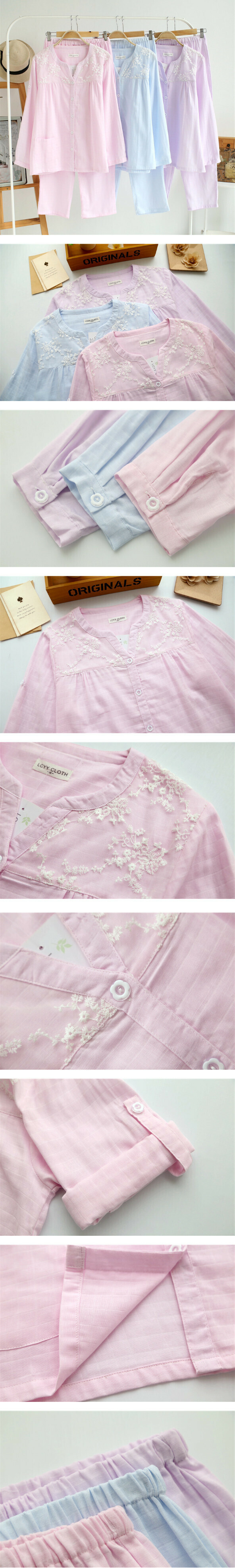 新款全棉紗布蕾絲邊家居服套裝(淡紫色)【M-XL碼】【下單後聯絡客服確認發貨尺碼】