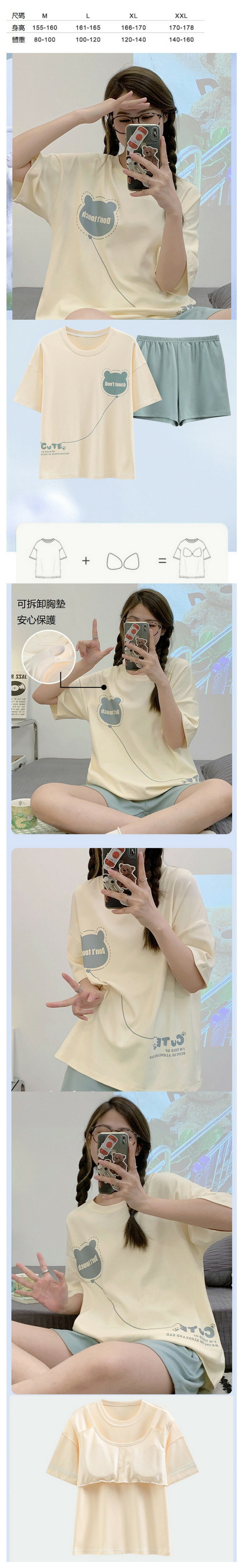 熱推帶胸墊純棉短袖睡衣套裝 【M-XXL碼 SF-6208】【下單后聯絡客服確認發貨尺碼 】