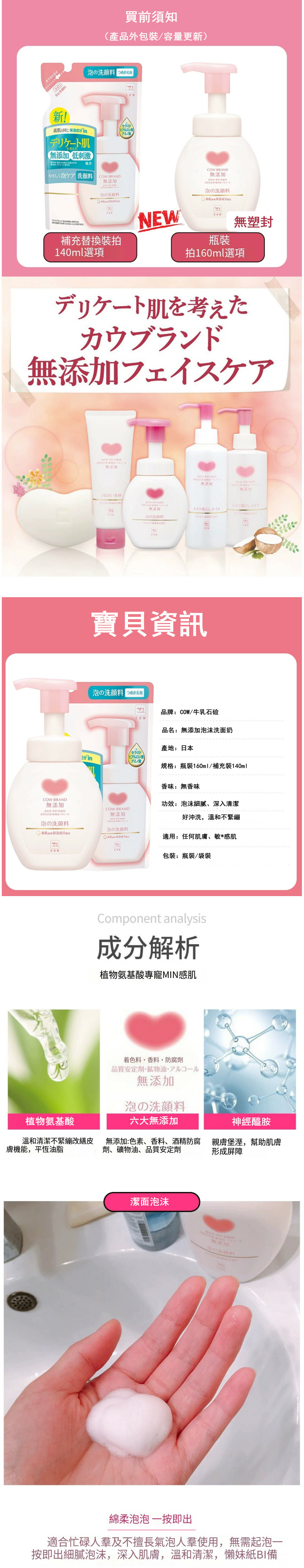 COW--牛乳泡沫洗面乳無添加慕斯潔面乳保濕【柔和軟毛牙刷】160ml x1瓶裝