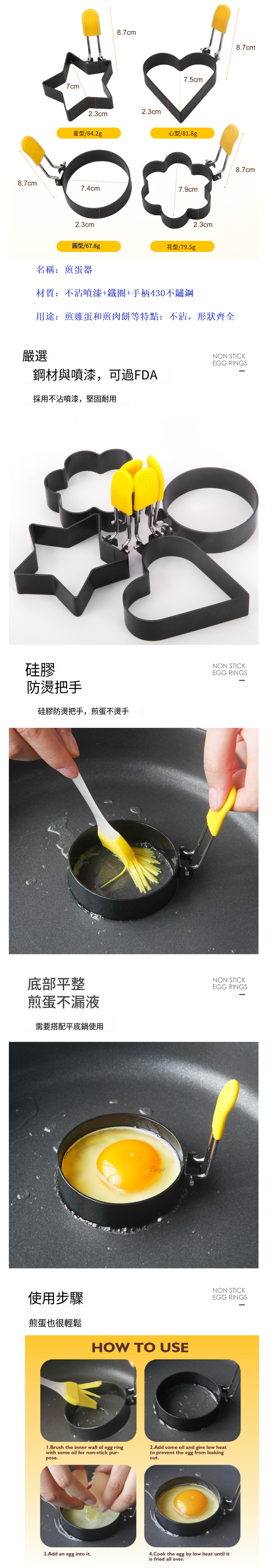 新款創意煎蛋模具煎蛋器(圓心花星4件套(矽膠套+彩盒+矽膠掃))