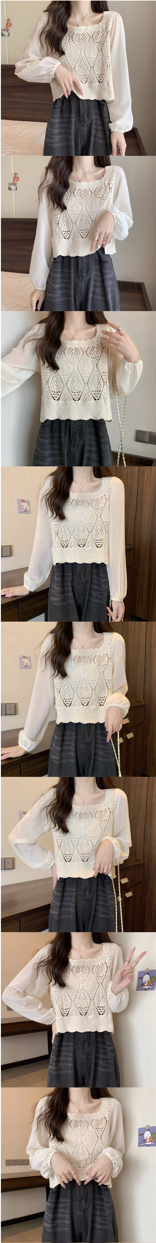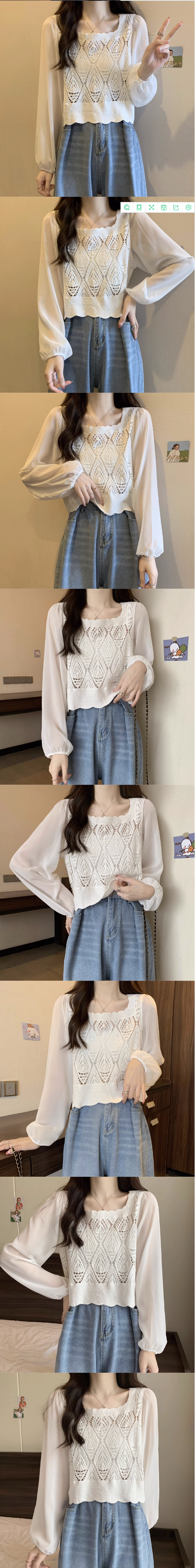 鉤花鏤空拼接雪紡襯衫防曬上衣