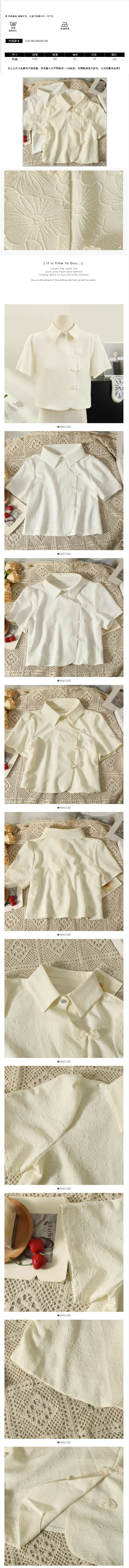 爆款盤扣設計短款襯衫(杏色提花)(均碼)