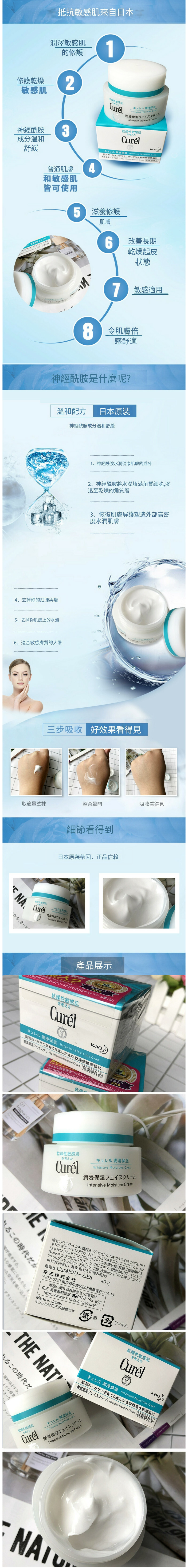 Curel--潤面霜高保濕霜敏感肌乳液補水滋潤鎖水【無香型】40gx1罐